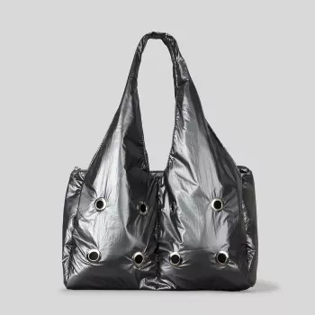 Silver Nylon Rivet Puffer Shoulder Bag – Large Soft Casual Tote Purse