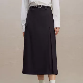 Chic Black High Waist Wool-Blend Slit Skirt – Casual Mid-Length Elegance