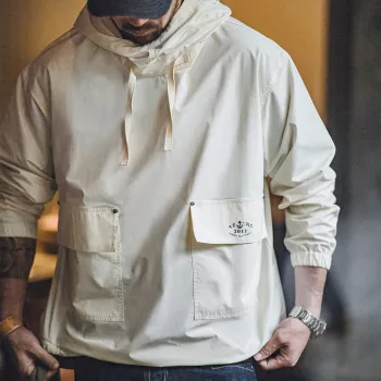 Men’s Vintage Outdoor Windproof Pullover Hoodie with Large Pockets