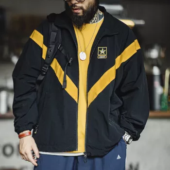 Men’s Retro Outdoor Training Jacket with Reflective Strips and Zip Pockets